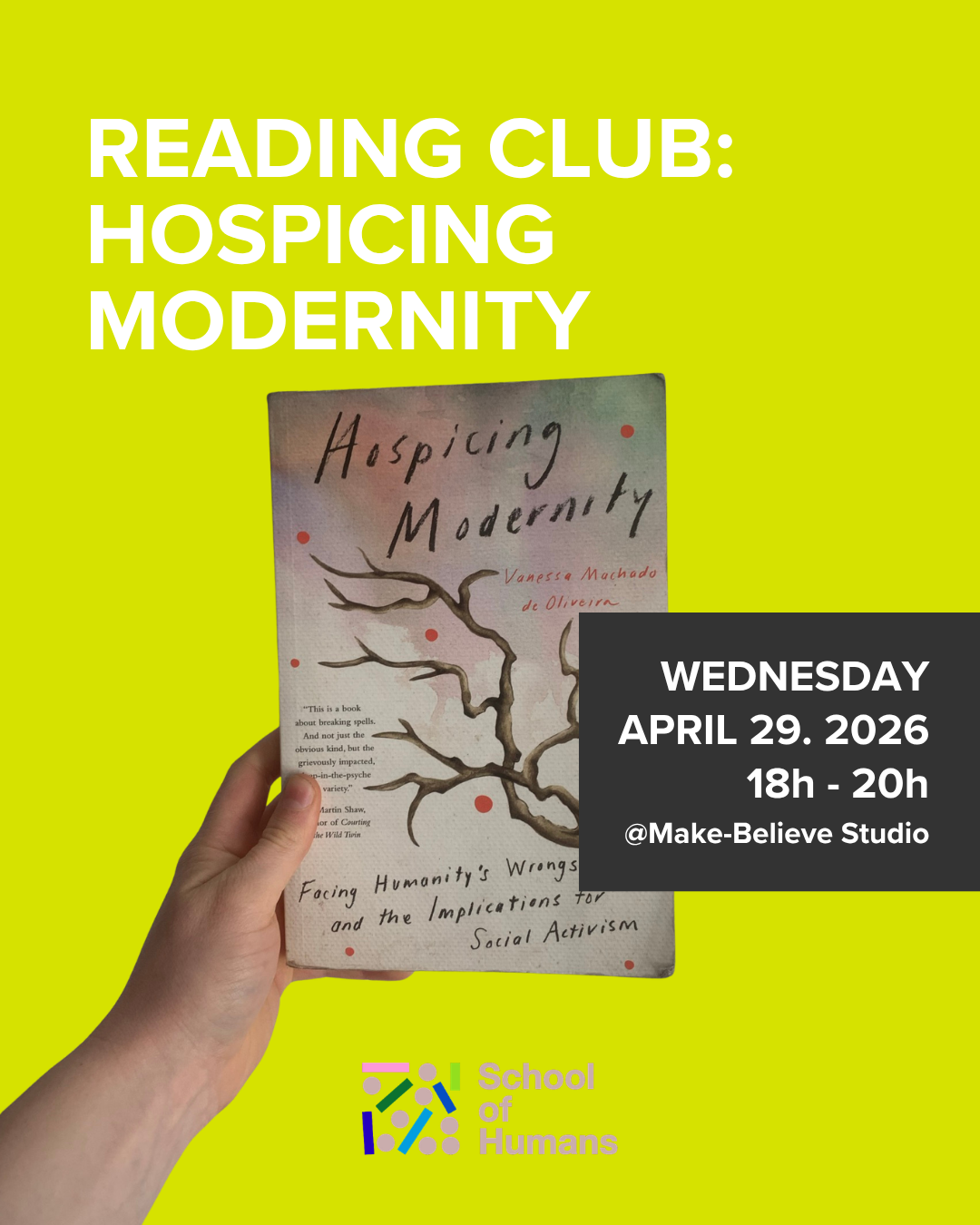 Join us for our first School of Humans Reading Club event on Wednesday, April 29. 2026 — 18h to 20h